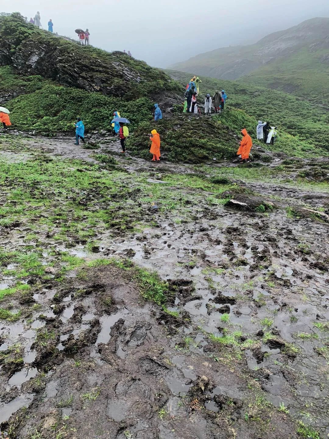 《中国新闻周刊》实地走访发现,大小环线都经过的5号湖周围,由于植被遭踩踏而光秃裸露的区域约为一个篮球场大小。此外,由于当地多雨,踩踏植被形成的游径往往泥泞不堪,为了避免陷入泥浆,游客会沿着游径路线踩上两侧的植被,游径的宽度由此不断扩大,被踩踏的植被面积也不断扩大。