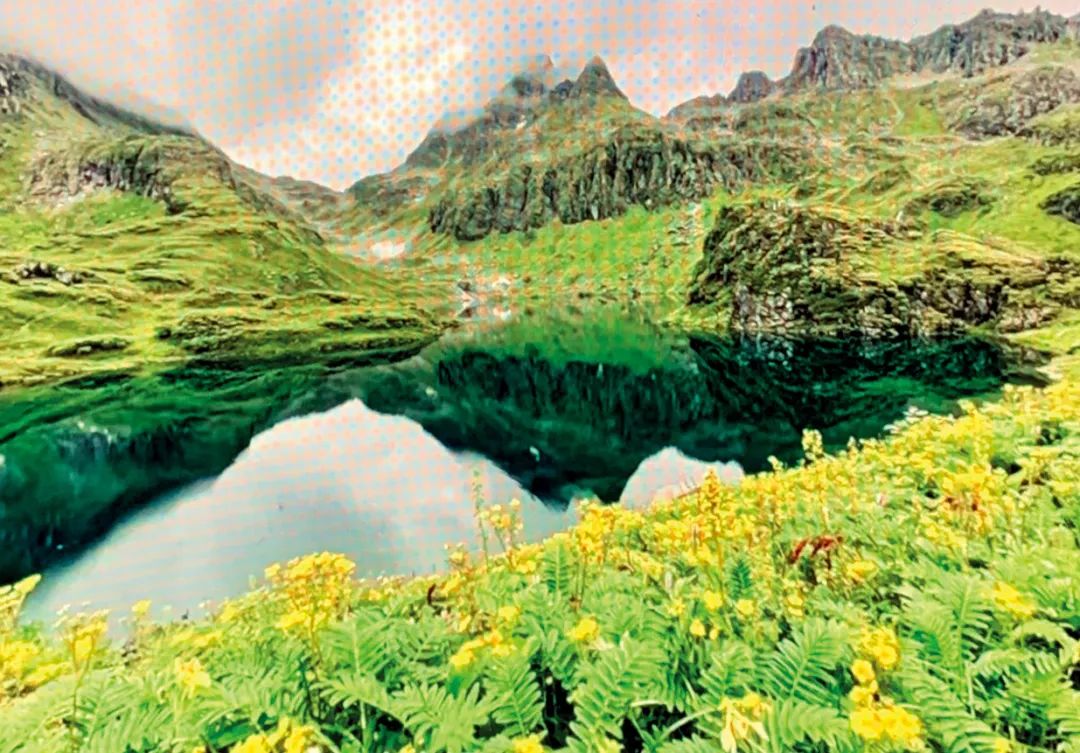 巴迪乡民宿老板赵萍(化名)手机里保存着2023年南姐洛5号湖的照片。过去,每到夏季,5号湖周围就成了一片花海。在高海拔地区,要长到图中的高度,许多植物需要生长20年乃至更长时间。翻拍/本刊记者 王宇