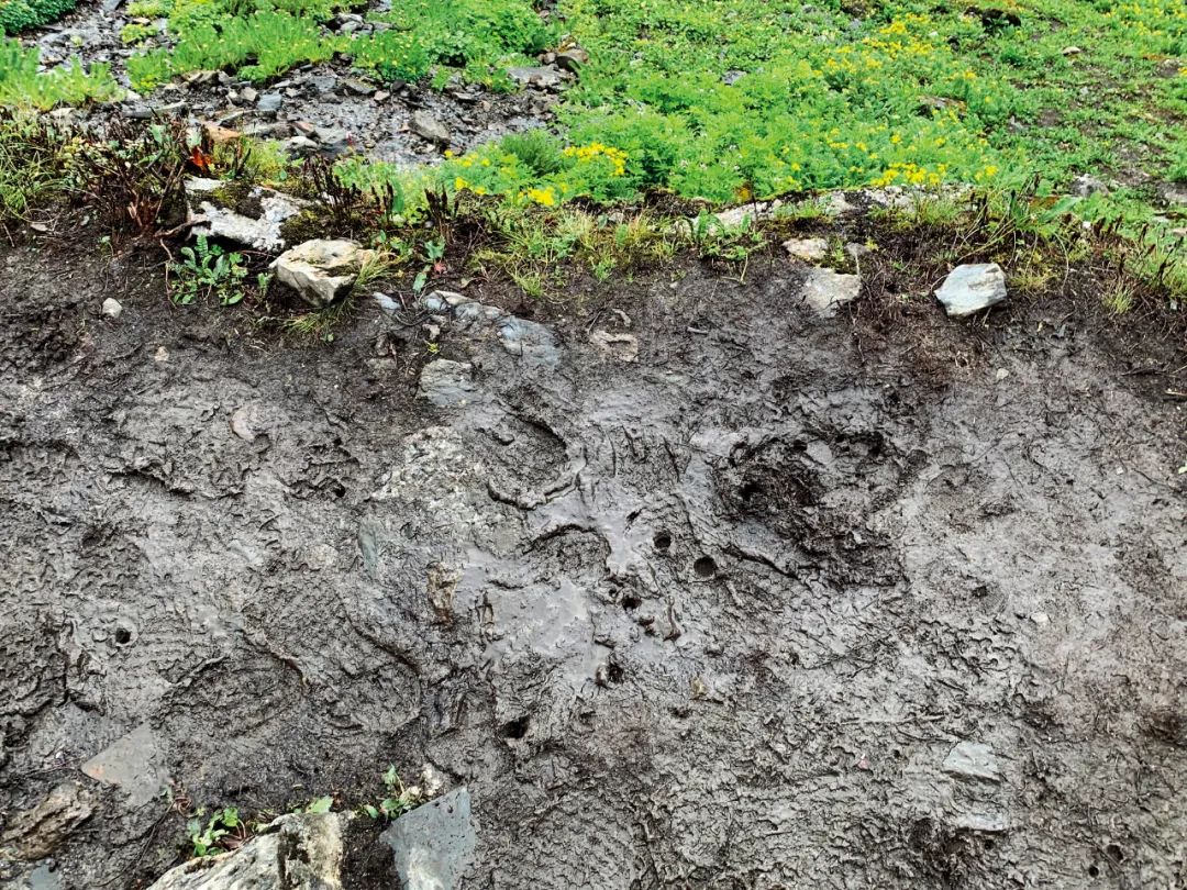 南姐洛徒步路线上,高山植被遭踩踏的场景比比皆是。尽管阿尺打嘎村经济联合社对外宣称每天只开放200个进山名额,但实际进山人数远不止这个数。摄影/本刊记者 王宇