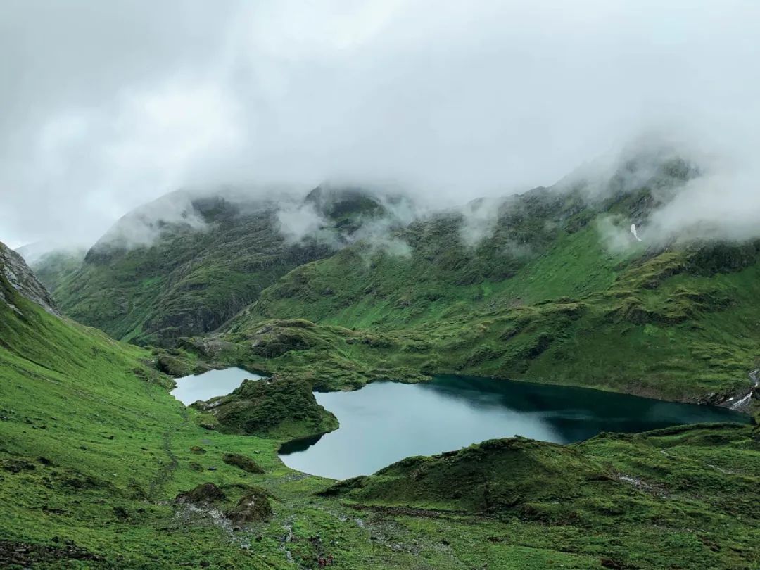 来南姐洛徒步的游客,一般有两种路线可选择,这两条路线都由湖泊串联。从3号湖走到5号湖,再回到3号湖,这是用时3小时左右的小环线,路程5公里;从3号湖出发,经过5号湖,爬升翻过海拔4500米左右的垭口,依次经过7、8、9号湖,回到3号湖,这是用时6小时左右的大环线,路程10公里。