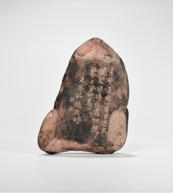 在一方莲花瓣砚上铭曰:素馨莲,佛心居。出污泥,叶碧绿。传经书,功德聚。