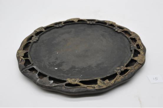 清代:苴却石 花叶连枝镂空圆砚 直径238mm 高15mm