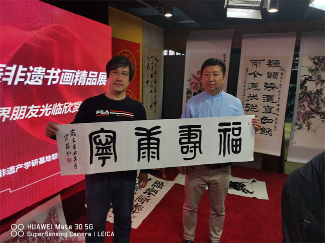 参加这次活动的老师和嘉宾有:中国轻工投资发展协会理事长李国都先生,满堂香、中国非遗书画院非遗推广基地负责人栢总、主办单位中国非遗书画院有金燕侠、周桂禄、韩山林、张贵禄、魏宗安、胡志刚、曾燕等老师;中国教育台书画分台台长姜喜忠老师、新时代鲁艺董事长孙刚令老师、著名画家王世元老师,红色诗人许世德先生,副秘书长张清峰老师,北京二锅头股份有限公司总经理孟国杰先生,秦铭文化集团总经理李建勤女士,宁波银行光彩路支行行长杨洋等社会各界朋友参加了开幕式。