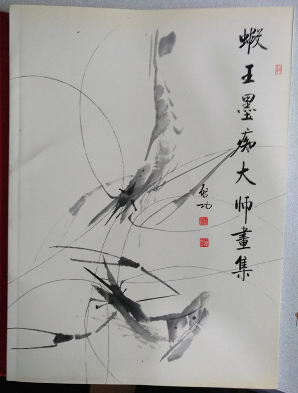 没过几天,便取回由启功先生题名的“虾王墨痴大师画集”。置于案头,后又交启功的秘书付建华为其治印“墨痴画虾启功赞之”,并言墨痴之虾唯恐在30年内没有人能够超越。