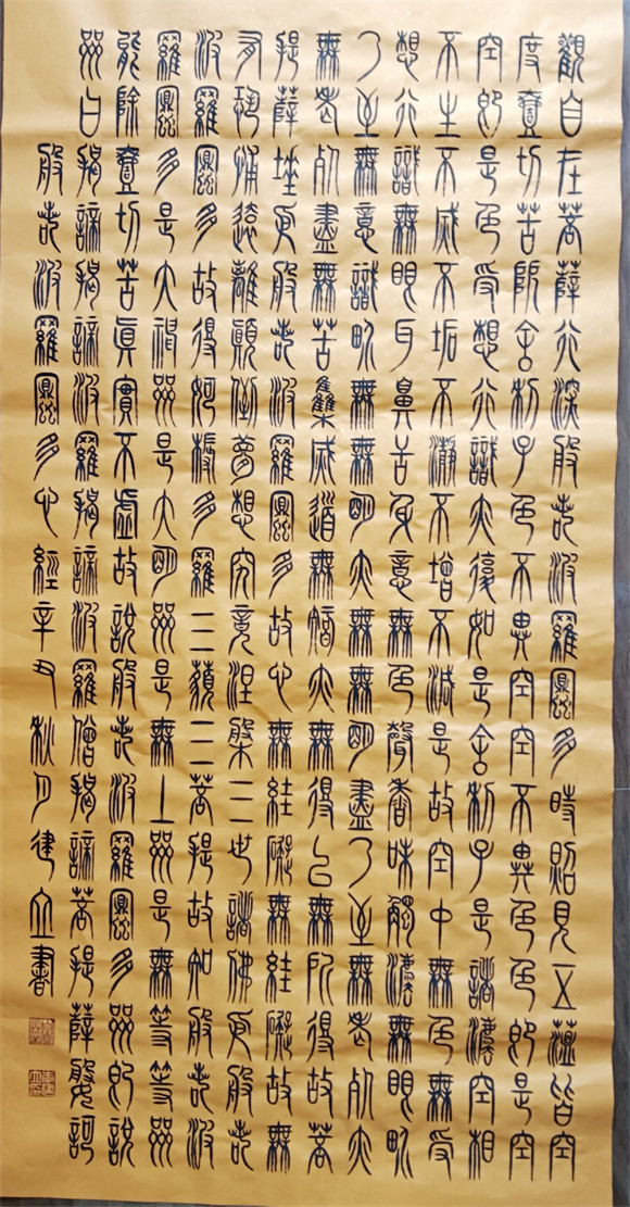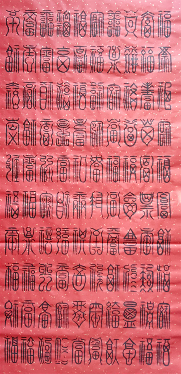 北京军旅书法家李建立现为国家一级美术师,中国书画界联合会会员,中国文化艺术发展促进会榜书艺术研究会会员。作品以小篆为主,代表作品有《大悲咒》,《春江花月夜》,《百福图》,《百寿图》等。