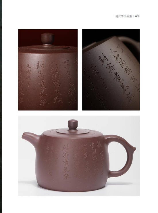 此次选择与赵江华先生合作实乃荣幸,赵先生与我父亲同龄,我们同属虎,性格相投。作为顾景舟大师弟子,先为顾景舟大师的保健医生,后由顾景舟大师亲授制壶技艺,跟随顾景舟身边18 年之久。他为人低调、内敛、不张扬,他所创作的紫砂器一度成为海内外很多紫砂刊物的封面、封底之作,也是收藏家极力追捧的对象。每每见他认真做壶,我的内心总有一种灵魂的洗礼和精神的升华。因为,在他心中,传承好紫砂技艺就是对顾景舟大师最好的传播,不能中断,只能接续。说心里话,我喜欢他做的壶,质朴大气,古雅敦厚,有深刻的悟性,有独特的表达,更有让人敬畏而赏心悦目的静美,令人悠然神往。
