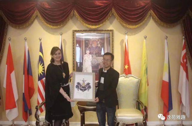 在中英会客室与欧洲贵族、英国皇家礼仪师、英国安内特.科霍恩男爵夫人交流