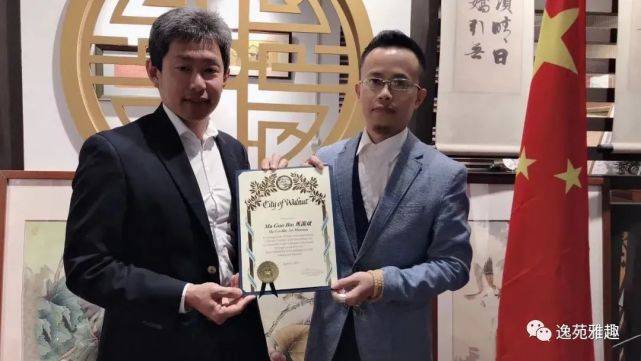 美国核桃市秦振国市长为马国斌先生颁发美中文化艺术贡献表彰荣誉证书