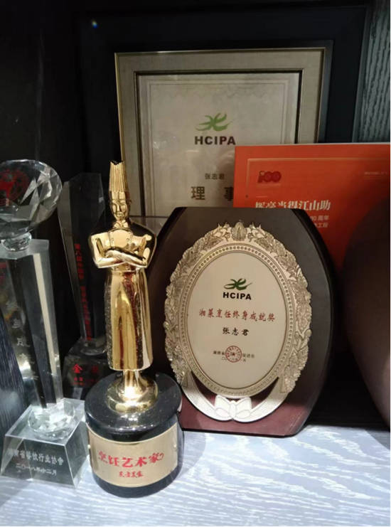 而有异曲同工之妙是,张志君老师在全国第二届烹饪技术比赛中以五光十色的花色冷拼“锦上添花”和鲜嫩香辣的热菜“软蒸火夹鳜鱼”夺得两枚金牌,实现了湘菜在全国烹饪界的“零的突破”。从他1985年有幸成为著名画家何海霞先生入室弟子,专攻国画山水。1998年获得“湖南省中青年十杰画家”称号。1999年出版了《张志君中国画作品选》。创作的《三峡晓色》、《苍山清泉》、《罗霄山韵》、《万壑松风》、《锦绣云山巧凿成》等作品曾多次参加湖南和全国美展。2001年《山涧溪》入选第十五次中国美术家协会主办的“新人新作展”,2002年《武陵高秋》荣获全国中国画展优秀作品奖。