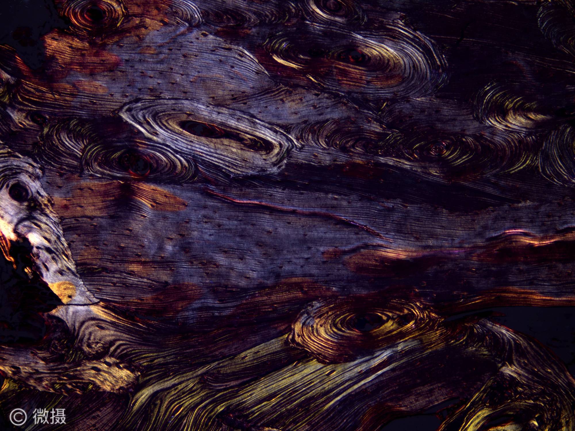 狐仙 - 牙齿磨片局部的镜像X100 -偏振光 -2014 - Fox fairy - Mirror image of part of dentin section X100 - Polarized light -2014