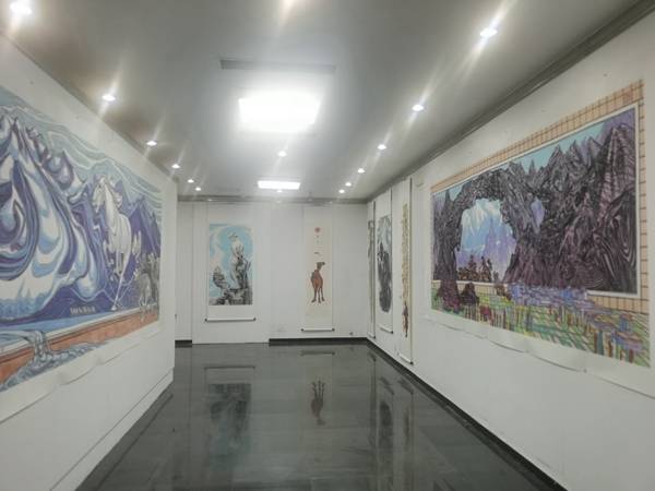 江山揽胜绘画主题展分三个单元。第一展厅"众山皆响"以金京模先生地质科考生涯中大量写生实景为主题的名山大川,凸显了祖国瀚疆地理、地质、地形、地貌生态的艺术多样性;第二展厅"吞吐大荒"艺术主题反映了画家“外师造化、中得心源”,予与山川神遇而迹化的抽象表现手法。以文学诗性的浪漫主义笔触表达大自然四时变幻中的鬼斧神工;第三展厅"拟幻入真"油画主题反映了艺术家放眼世界,回归文化传统,温脉造境,兼容并包,"隔代传承,横向移植"创新传统的胆识与国际视野。三个展览主题各美其美,美美与共,近乎完美地呈现出作者在传统与现代之间,在东方与西方之间,于有法和无法之间杰出的艺术造型能力。以科学和艺术精神明德弘道,坚守民族文化种姓,为祖国山河立传的正大气象!