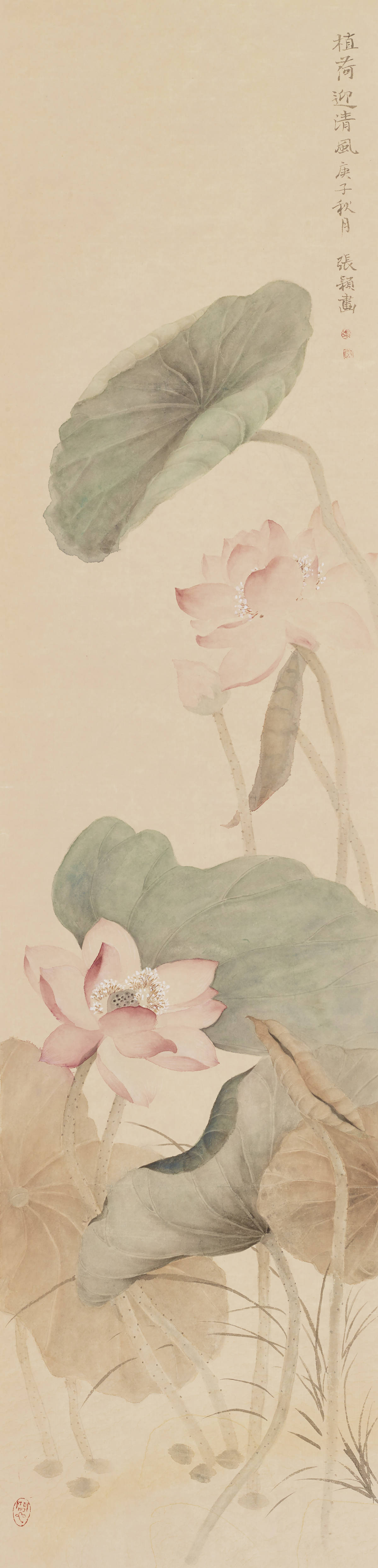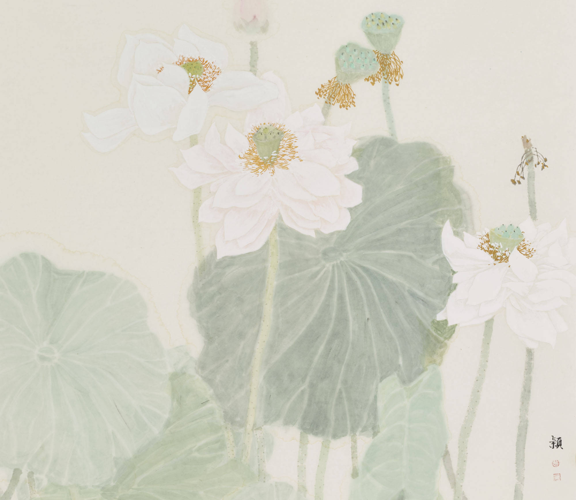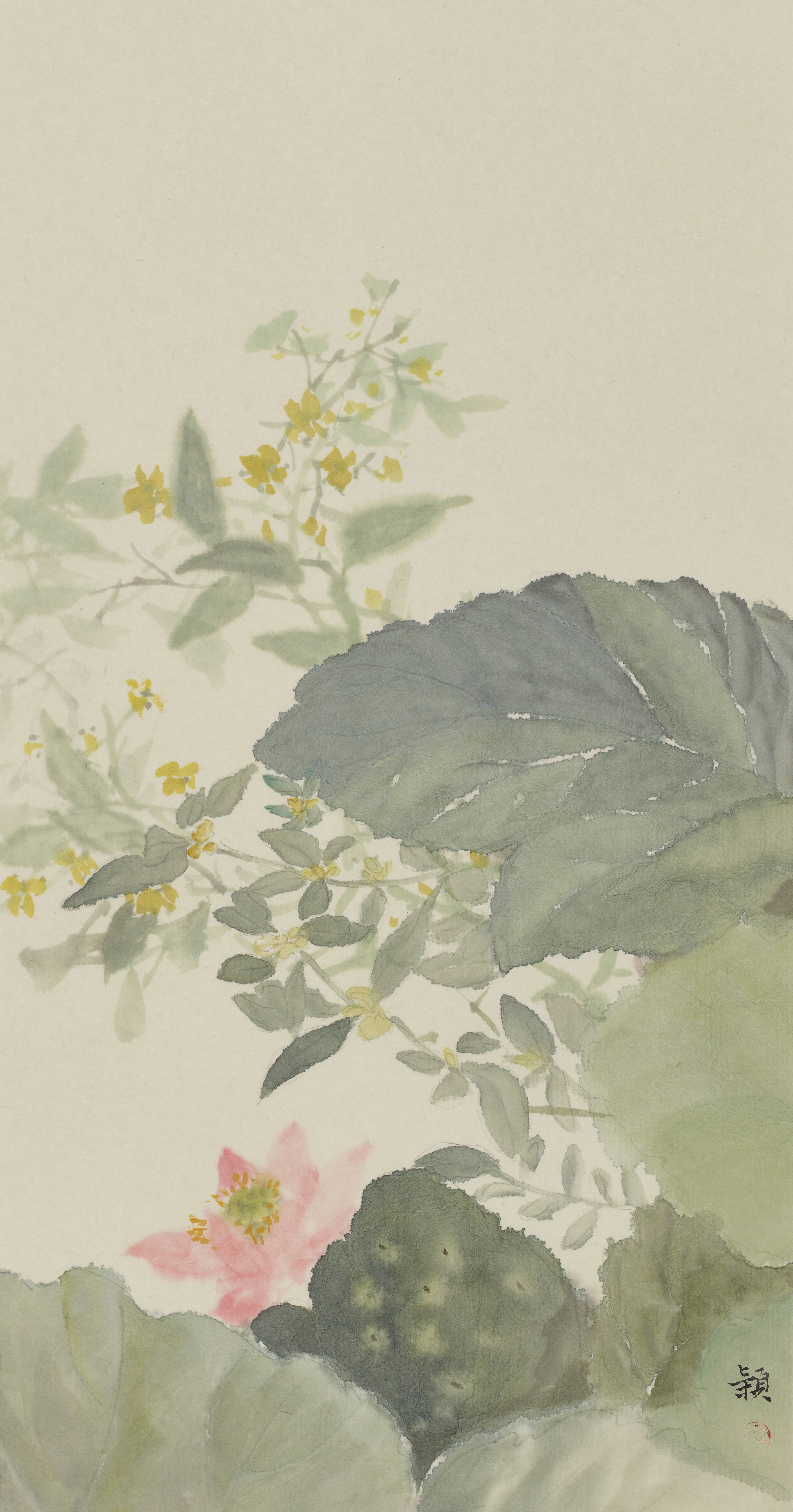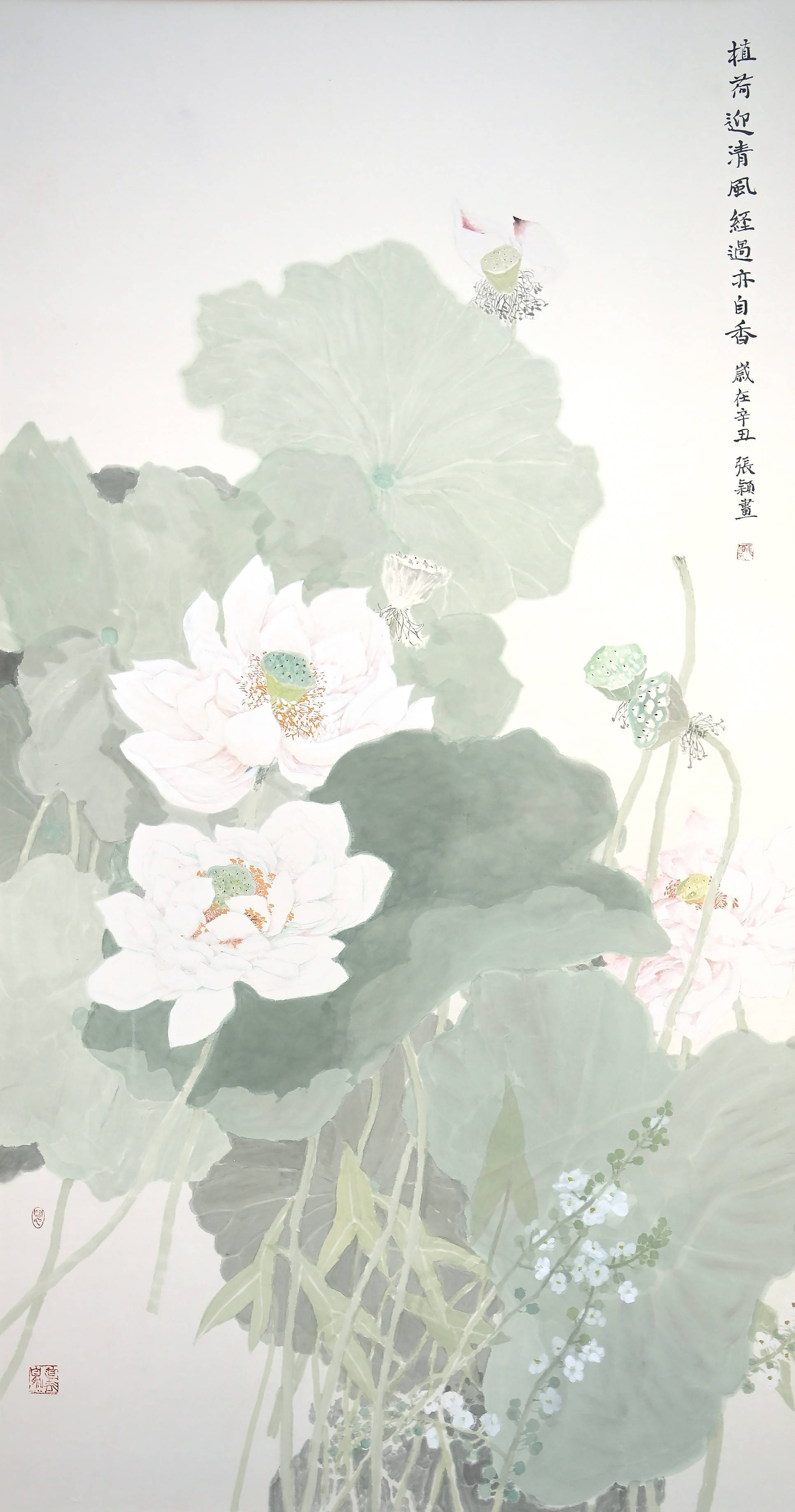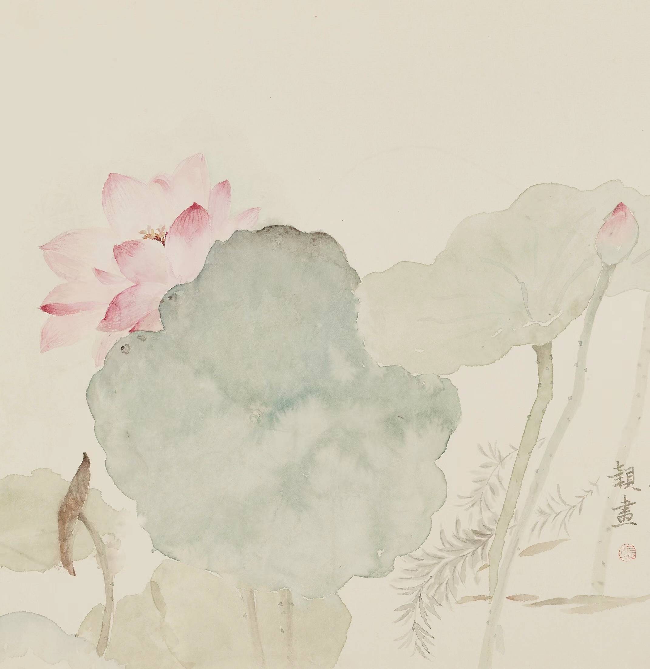 张颖的画淡雅,人们会说觉得淡雅没有力量感,也许有些人觉得不够宏大,殊不知这更是一种坚忍的力量,而这种力量,在当今五光十色的当代生活中尤显出尘,作品《植荷》正是这种境界。