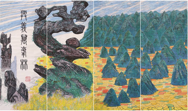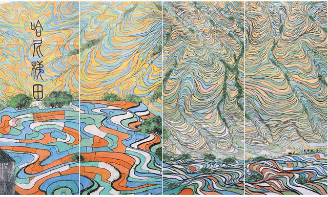 我们面对红土地、哈尼梯田和石林,倾听画中传出的大地波涛声,心中汹涌澎湃,浪花激溅,我们的心早已变成鸟儿飞翔在红色高原上,整个心灵沉浸在大自然那和谐动听的和声之中。