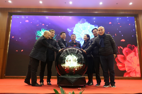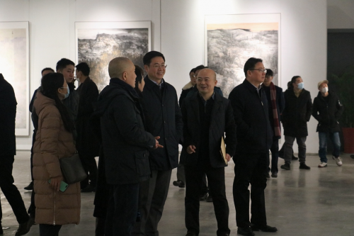 环太湖艺术城董事长钱臣先生(右二)陪同领导嘉宾参观展览