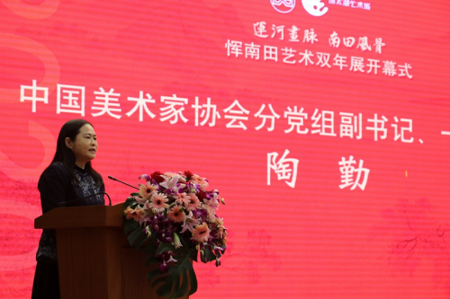 五是中国美术家协会分党组副书记、一级巡视员陶勤女士致辞,宣布展览开幕;
